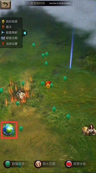 4、接下来点击地球图标,进入国家选择界面,这时就能够挑选新的区服了。
