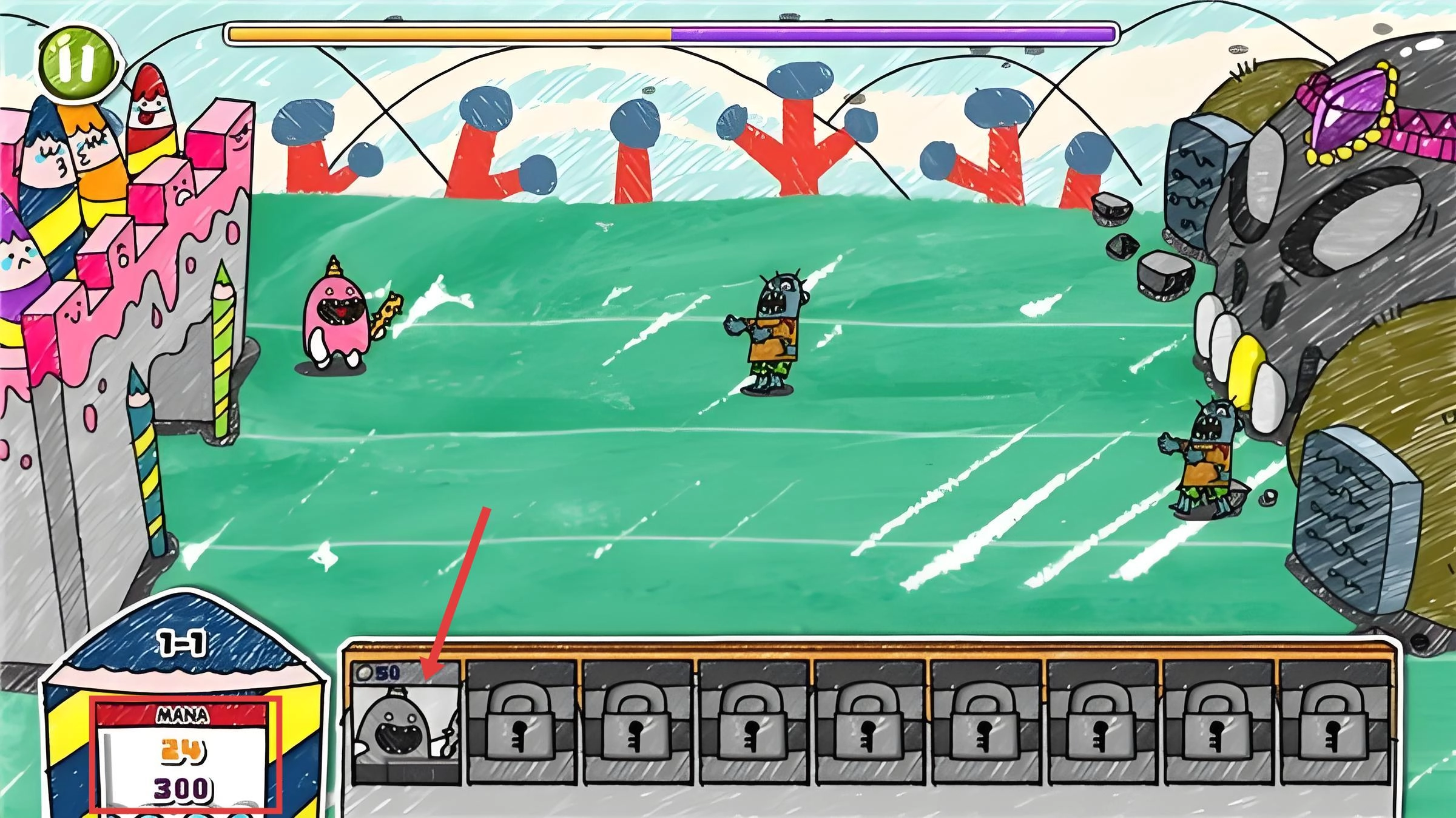 1、别具一格的艺术视觉风格:以彩色素描的绘画风格搭配Q萌的角色设计,赋予塔防战斗浓郁的艺术美感,为玩家带来耳目一新的视觉体验。