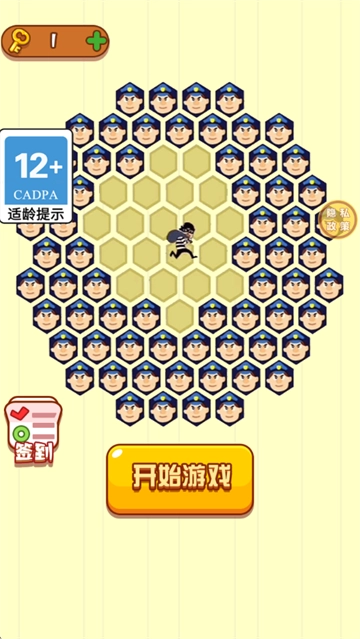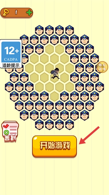 1、请注意【12+-CADPA适龄提示】,接着点击【开始游戏】,通过规划路径来帮助警察围堵位于中心位置的小偷。