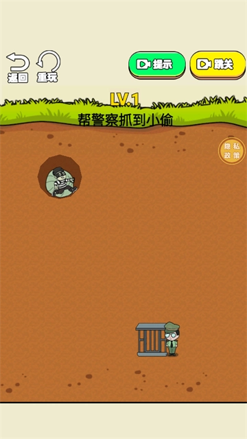 3、于【LV.1】关卡中,留意小偷洞穴所在之处,能借助【提示】功能,指引警察对小偷展开围捕。