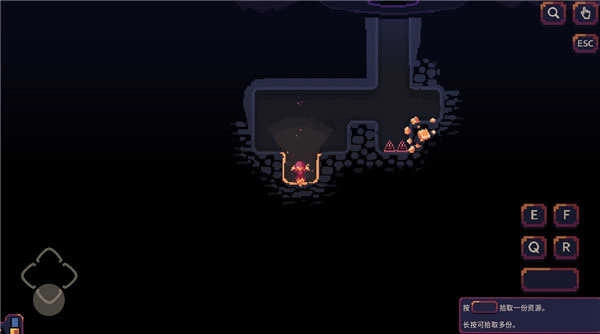 1. 长按屏幕左侧并滑动,即可操控角色移动;当按住的方向对准墙壁时,便能进行挖矿操作。