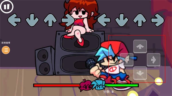 4、踏入游戏,游戏中的关卡以Week加上数字来进行区分,其讲述的是主角在周五夜晚所遭遇的事故。没想到,想要和红衣小妹妹相伴竟是这般困难重重,总有一些人企图拆散这对CP。你要做的,便是拿起手中的麦克风,勇敢迎战那些扑面而来的敌人。