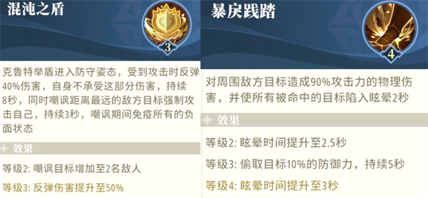 与其他守护型伙伴有所差异,克鲁特的一技能不仅具备嘲讽效果,还拥有免疫能力。当它与二技能【暴戾践踏】协同施展时,能够稳稳地对群体造成长达三秒的眩晕。在战斗前期,若再搭配其他伙伴的群攻技能,借助强大的控制能力,就能迅速在战斗中占据优势。
