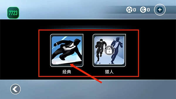 2、来到【模式选择】界面,该界面有【经典】与【猎人】两种模式,完成经典模式之后就能解锁猎人模式,此时选择【经典模式】。