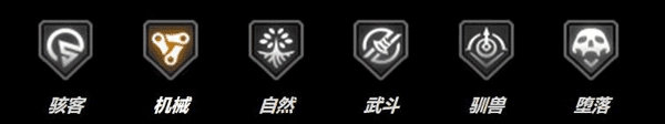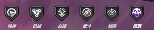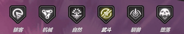 在游戏里,各位能够看到总计有六个阵营,分别为:机械、驯兽、武斗、自然、堕落、骇客。当每个阵营上阵的英雄数量达到特定数值后,就会产生羁绊加成。此外,英雄分为四个种类,即:战士、灵能、刺客、堡垒。