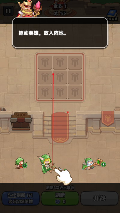 2、进入游戏后拖动英雄去背包里面,然后刷新更多的英雄,进行合成