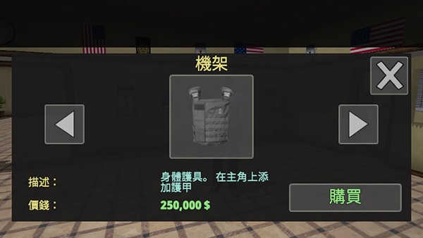 3、商店 玩家点击“改变统一”下方的区域,即可进入商店,在这里能够购买警棍、摄像头、防弹衣等物品。