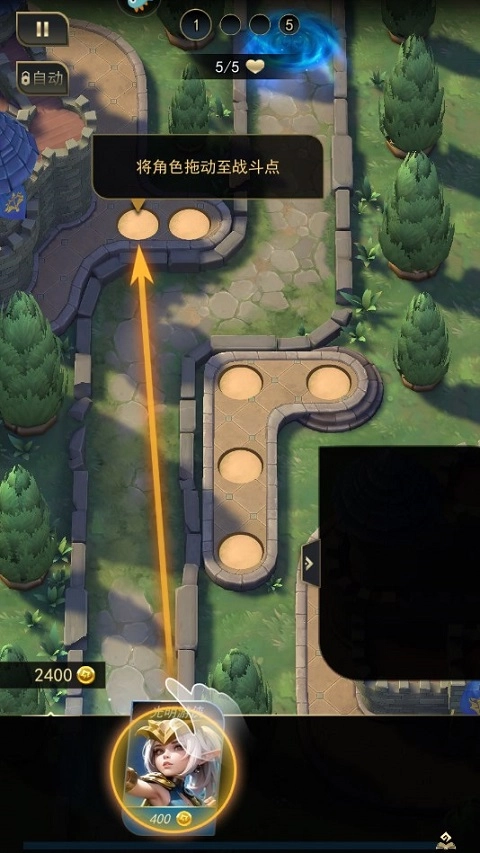 1. 游戏开始时,玩家能够拖动底部的英雄卡牌,从而将角色移至战斗点。