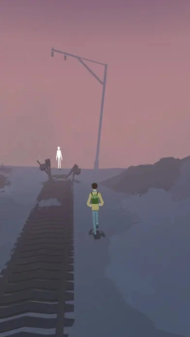 2. 一道白色影子自男主身上脱离,男主为了追回影子,跟着它坠落到一个未知之地。落地后,男主起身观察周边环境,同时适应一下操作方式。轻点屏幕就能让人物移动,此外,还能通过晃动屏幕或者用手指在屏幕上滑动来变换视角。