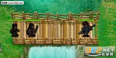 重点2:三位武将需保持行动一致,切勿单独越过坐标(11,7)的位置——也就是下图中主角站立的地方,否则会触发对面弓箭手的攻击。为防止被步兵堵在桥上,建议三位武将在桥上按照下图所示站位,由兰来承担弓箭手的技能伤害。