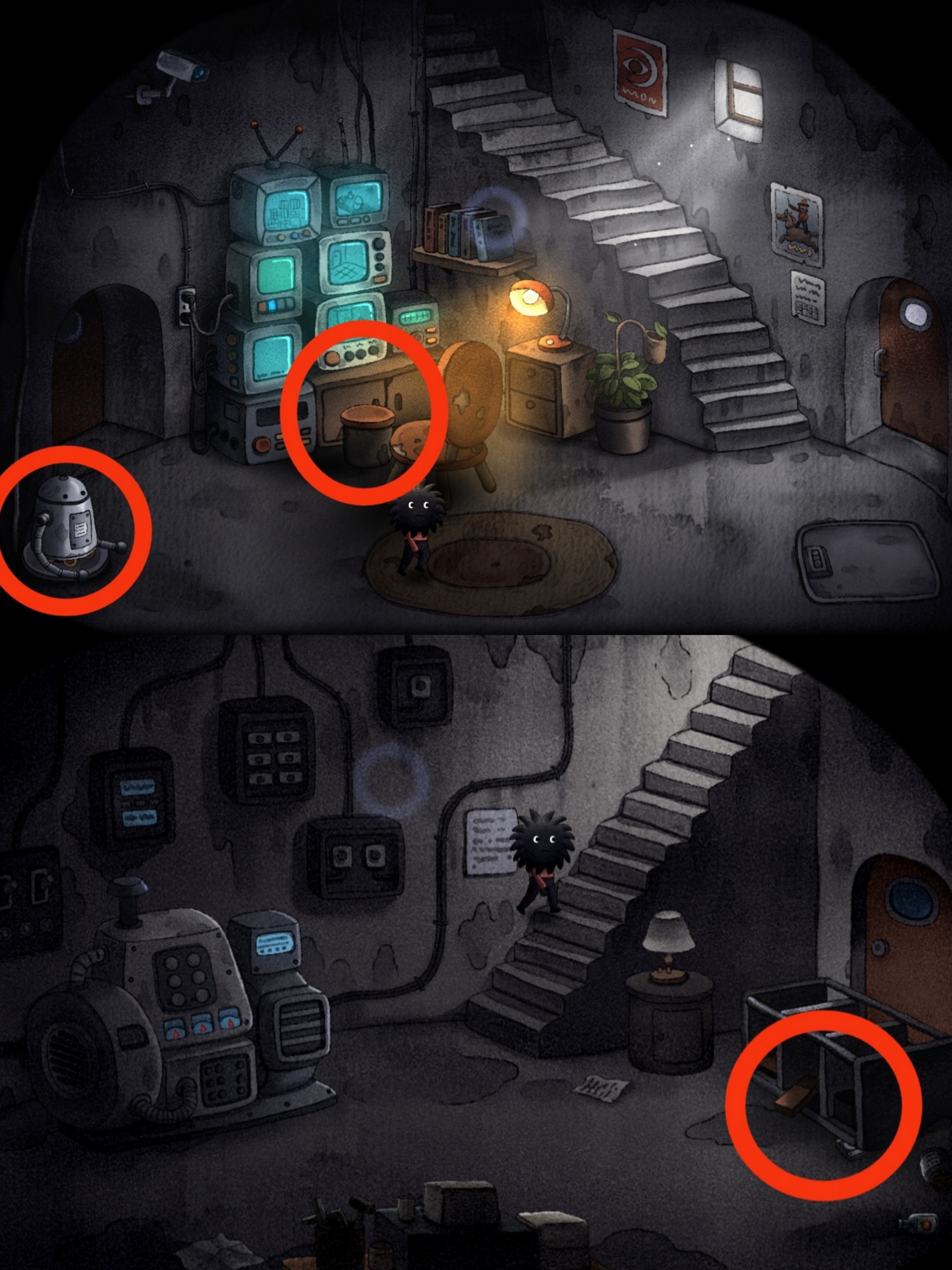 可以自由切换“角色”以应对不同场景中的特殊谜题;毛球头与球球需相互配合,借助各自的优势开展寻物解谜,方可解决变化多端的谜题。
