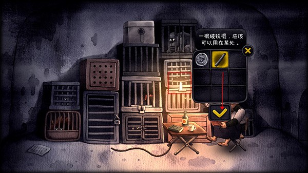接着点击放大镜切换回外部视角,再点击那盏灯,用铁管把灯敲灭,灯熄灭之后看守人就会离开。