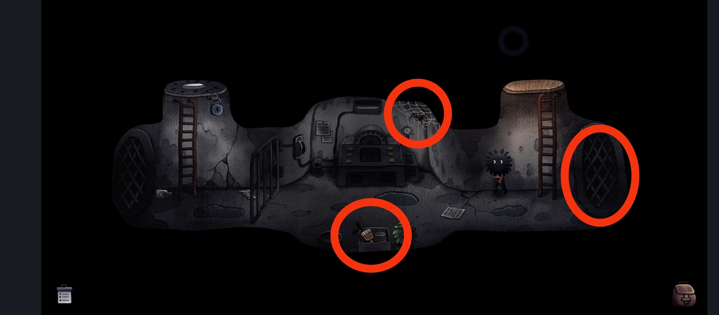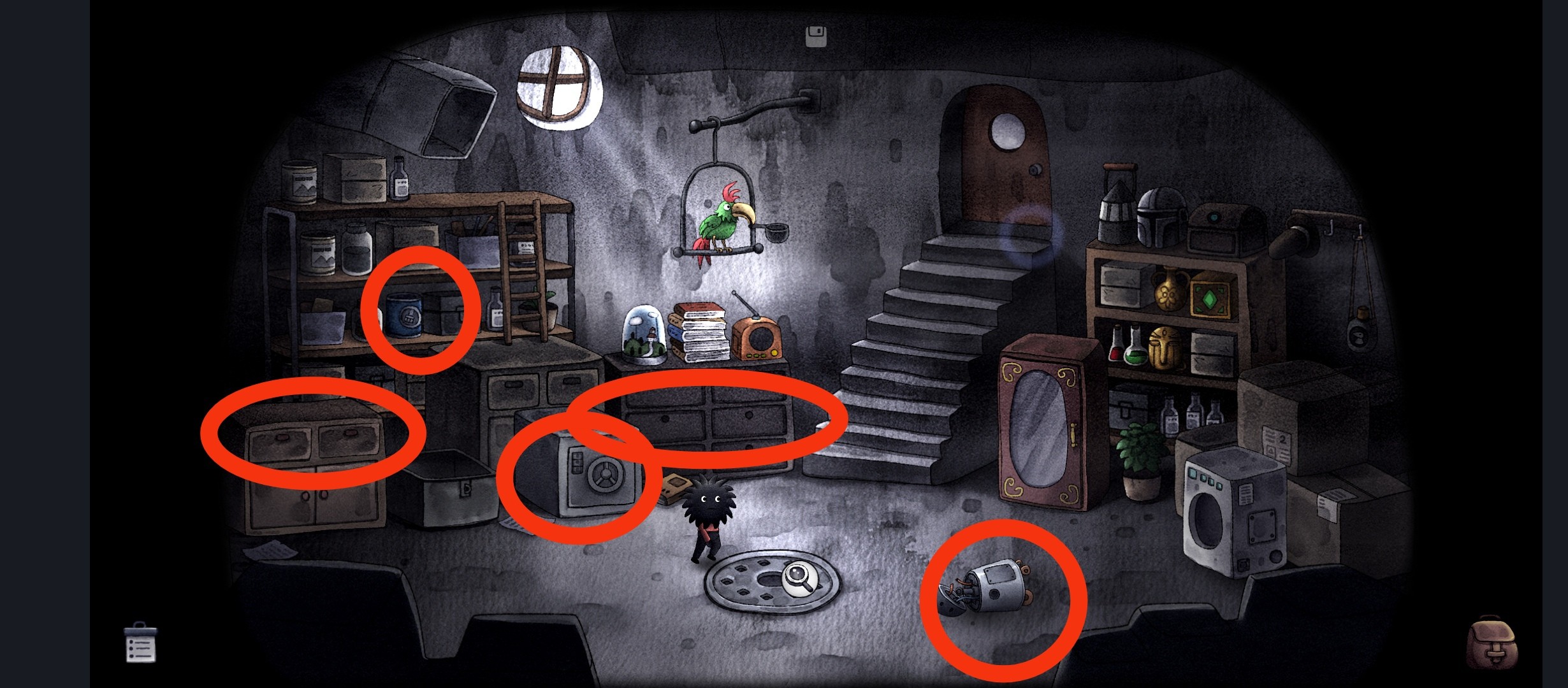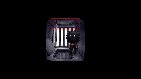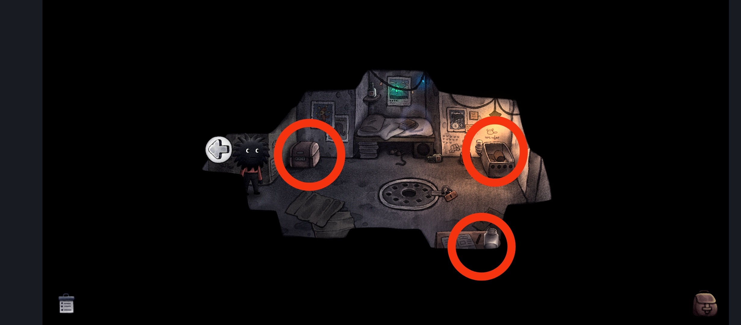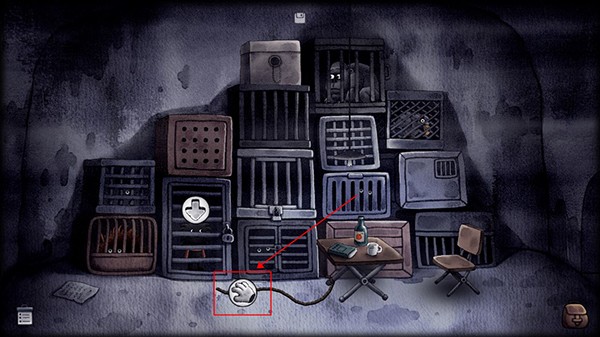 向右走到下方的收物箱处,在左侧用磁铁吸住钢珠;返回大房间后,把钢珠撒在楼梯上,接着打开收音机,然后躲进带有方形圆镜的柜子里等待有人进来,之后进入新的场景。