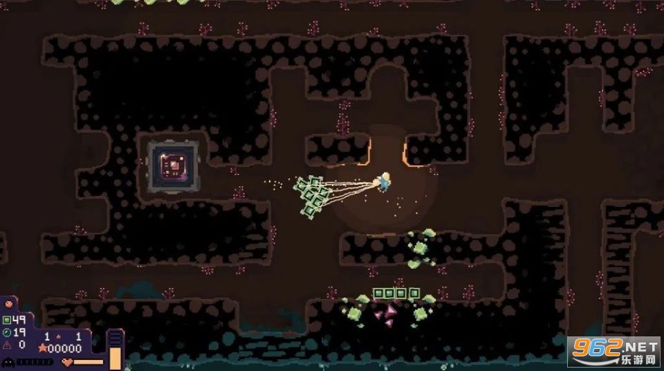 除了技能系统外,游戏还借助物理引擎来增强挖矿的技巧性。在实际游玩中,玩家每次进行挖矿活动时,携带的资源数量会受到背包容量的制约,无法无限制地将大量资源带回基地。而且,玩家携带的资源越多,移动速度就会越慢。