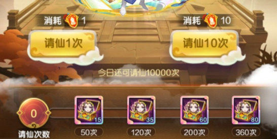 新区开服2到4天会开启请仙大典活动,单次抽取能直接获得完整神仙的概率仅为0.09%。先不说那些运气特别好的欧皇玩家,普通玩家如果想通过收集碎片合成完整神仙,大概需要抽取120到150次,换算下来得充值六七百块钱。这样算下来性价比实在不高,倒不如把344元的幻彩2神仙助力礼包买了更划算。所以除非是打算大额氪金的玩家,否则不太建议去抽请仙大典。