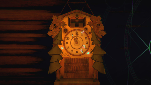 起身回头看向布谷鸟时钟,能看到时、分、秒针的正确位置提示,按照这个位置调整时间,就能得到游戏里第三张会说话的卡牌“弱狼”,以及通关必须用到的道具胶卷。