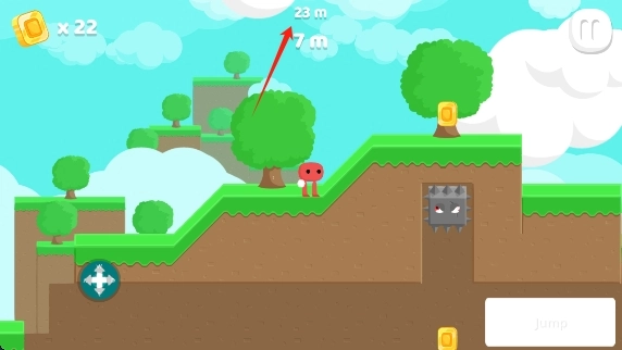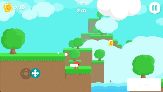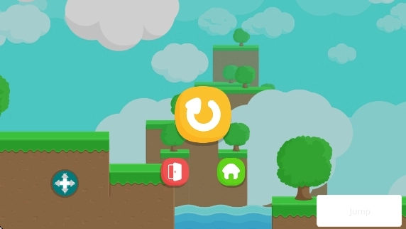 通过屏幕左边按钮操控角色移动,右边按钮进行跳跃。