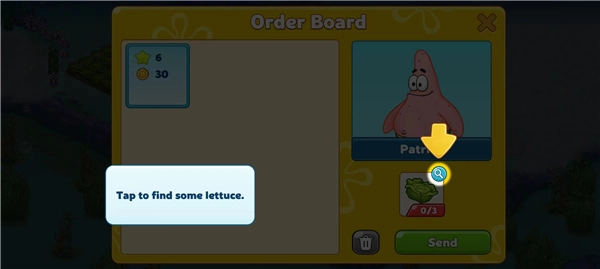 点击找到我们可以看到派大星栏下需要一些生菜;