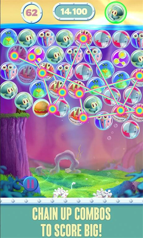 》是一款刺激好玩的消除类。游戏以经典动画片《海绵宝宝》为背景,玩家需要通过消除泡泡的方式解救被困在泡泡中的角色,帮助他们回到海绵宝宝的世界。游戏画面精致、任务多样化、难度适中、社交互动丰富,让玩家能够持续感受到游戏的乐趣。同时,游戏中的特殊泡泡和道具也让游戏变得更加有趣和挑战性。如果你喜欢消除类游戏,不妨《海绵宝宝泡泡派对》来试试吧!这款游戏有着别具一格的消除机制:在游戏进程里,玩家得借助消除相同颜色的泡泡来解救处于困境的角色。和传统消除类游戏存在差异的是,《海绵宝宝泡泡派对》运用了全新的消除形式,玩家要在规定的步数中消除尽量多的泡泡,与此同时还得留意巧妙运用特殊道具与技能,以此提升连击数和得分,让游戏变得更具挑战性与趣味性。