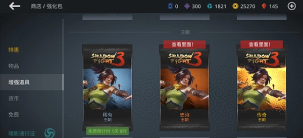 第三种类型是增强类道具,这类道具来自游戏内的商城,具体包含稀有军团、史诗军团和传奇军团三种。其中稀有军团是免费获取的,玩家每天都能获得一次免费领取稀有军团的机会,而且军团的等级越高,从中开出技能的概率就越大。