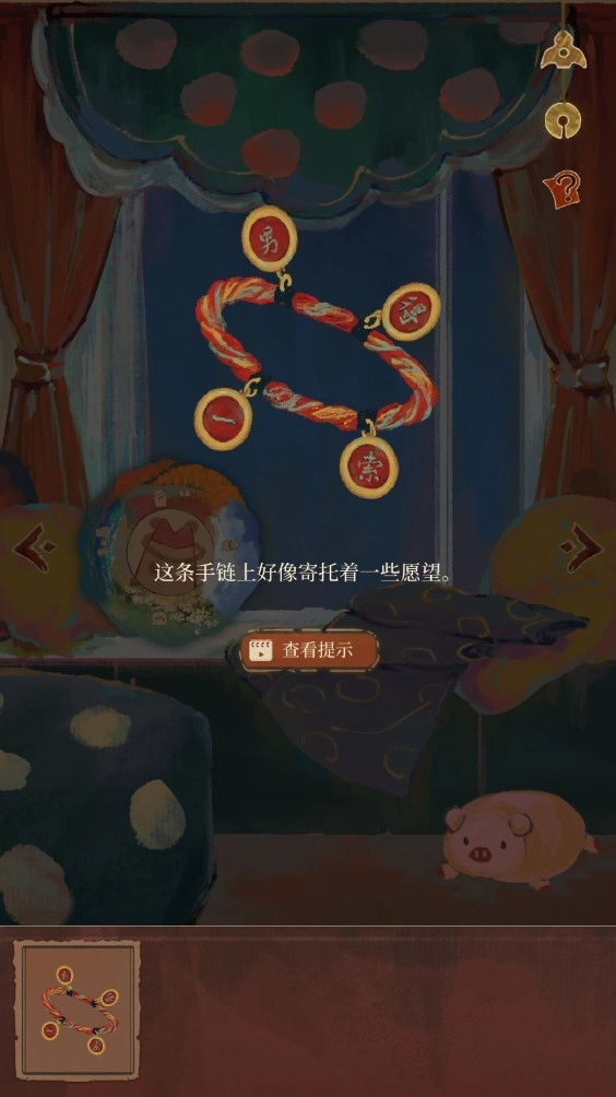 点击手链进行修复,接着把“索”“得”“男”这三个字按顺序排列成“一索得男”,这样就能获得完整的手链了。