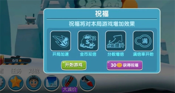 开始滑雪之前,记得选择一个祝福,比如开局加速等。