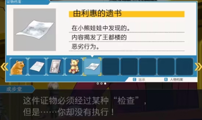 在庭审环节,玩家需要完成序审法庭对辩护律师的各项要求,比如盘问证人、提交证据,或是就证词里的矛盾点、检控方的证据提出反对意见。
