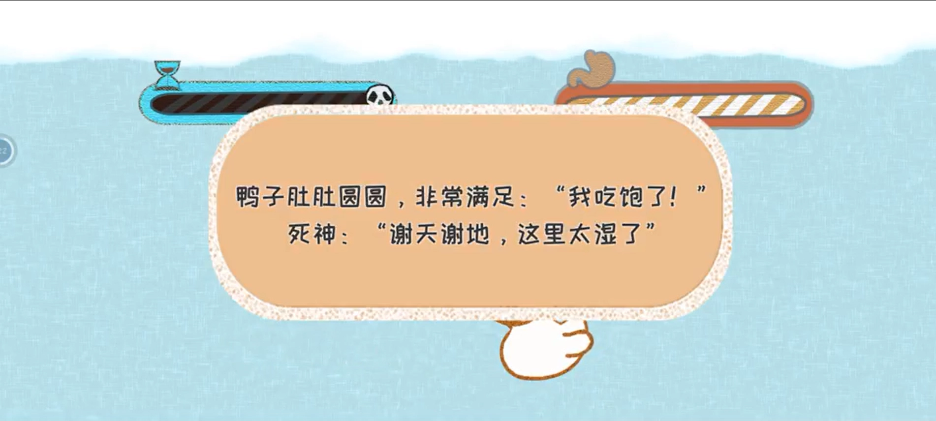 这是一款很有意义的小游戏,游戏将剧情与小游戏相结合来呈现整体内容。虽然剧情占了大部分,但它非常值得体验——每一幅画面都满是温馨,总能治愈玩家的心灵。故事里,小鸭子意外遇见死神,死神告诉它:每个生命(无论是鸭还是人)诞生时,死神就已伴随左右。随后,小鸭子开启了一系列冒险,而这些游戏内容也向我们传递着生命的真谛。