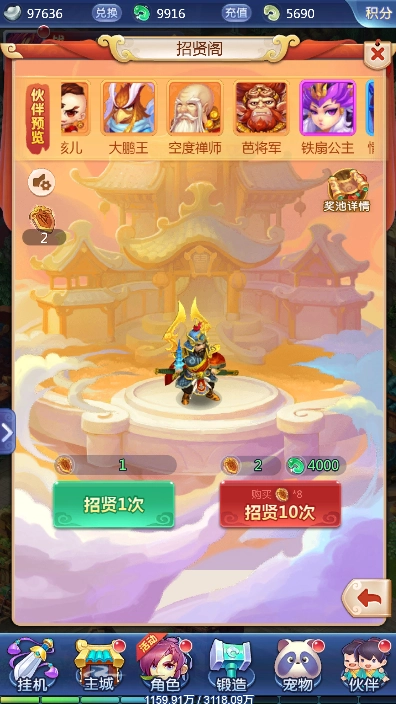 通天教主与忘川童子、精卫等伙伴组合,能触发其2星技能,提升己方伙伴的攻击频次。