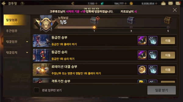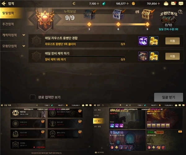 当你感到疲惫不堪时,就该开始做功课了。要是你通过查看每日成就,完成了所有作业并领取了奖励,那么就得去完成紧急任务里剩下的作业。紧急任务(除了妄想之塔)能随着等级提升到更高级别,所以建议把所有疲劳都用掉,尽可能地升级。既然是个人冒险者,要是有小号的话就能全部处理好。