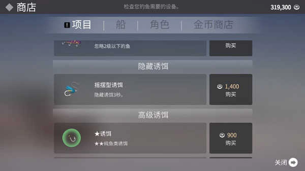 诱饵的使用也非常直观,不过它分高低级,能助力你钓到更高级的鱼品种,收集图鉴、完成任务,让你的钓鱼生涯更加多姿多彩。
