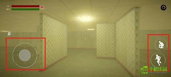 之后你会看到左边的轮盘用于控制角色移动,右边的轮盘则能实现跳跃和蹲下的操作。