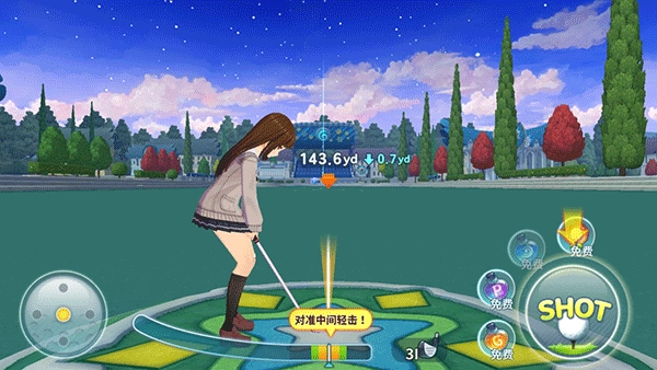 发球策略规划:每洞的首次击球要把球打到安全又能占据优势的位置,玩家可以通过拖动屏幕来设定击球的目标方位和力度大小,同时结合当时的风向和地形条件,从而做出最优化的击球决策。