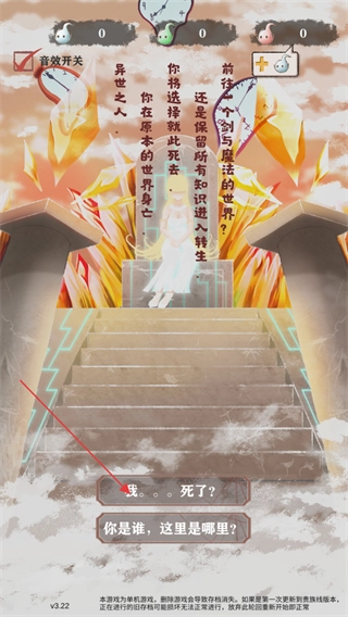 在当前的剧情界面中,选择第一个选项,就能推动剧情继续发展,进而进入后续关于转生选择的相关环节。