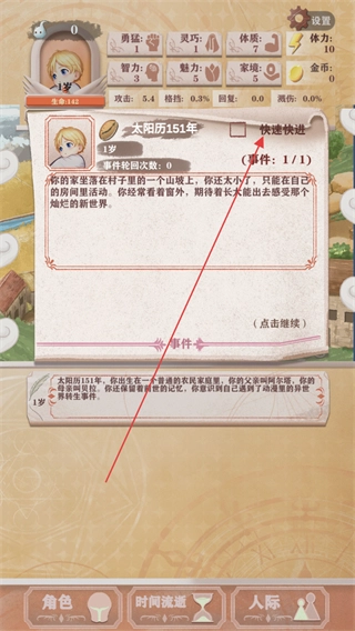 在剧情展示界面,你可以通过点击快速快进选项来加快剧情的推进节奏,也可以选择点击继续按钮,逐步查看当前的剧情内容。