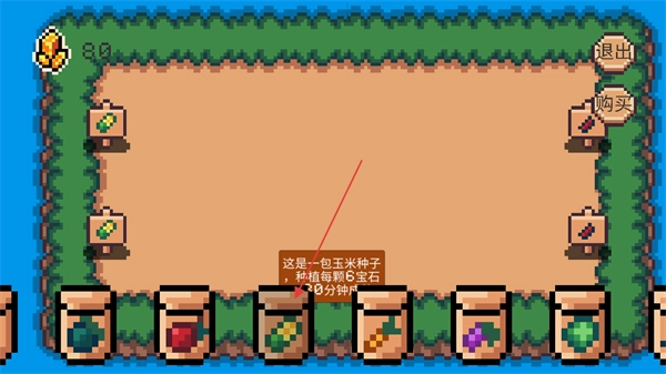 在底部种子栏中选中玉米种子,查看得知种植它需要消耗6颗宝石,同时也了解到对应的种植时长,在确认自己满足这些条件后,就准备着手进行种植操作了。