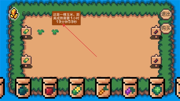 种植玉米后,留意它显示的剩余成熟时长,耐心等待作物成熟,这样后续才能开展收获工作。