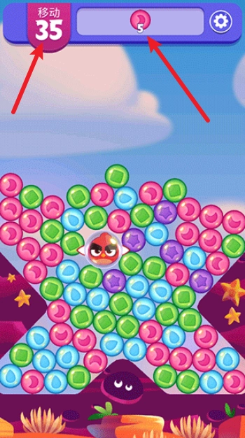 在最上方,我们能够看到需要收集的泡泡种类和对应的数量,而旁边显示的则是限定的步数。