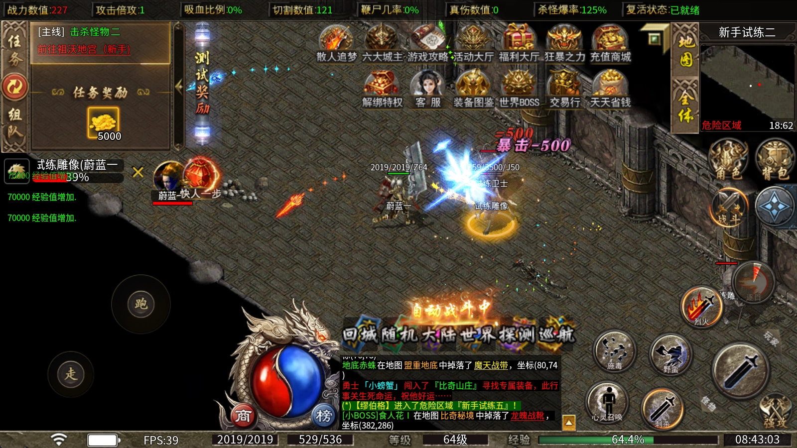 2、本服所有装备都得靠打怪获取,专属装备人人都有机会追梦,而且大陆越往后,对应的爆率就越高,爆装备的体验也更爽快。