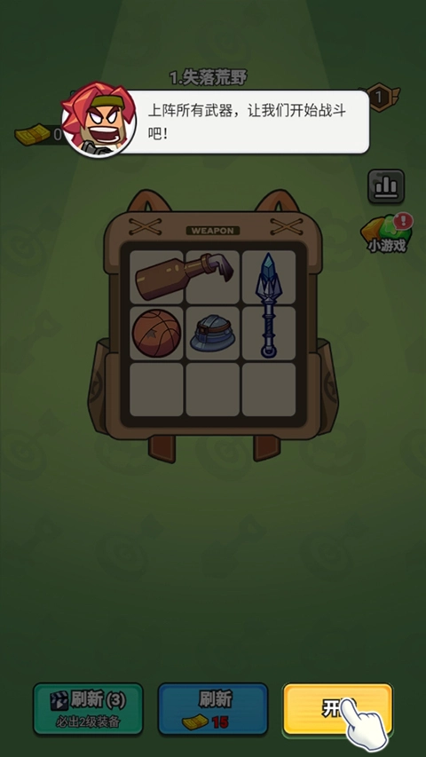 武器搭配方案:寒冰剑、冲锋枪、激光棒、帽子、针剂,再加上一件自选武器(例如喷火器或者火箭筒)