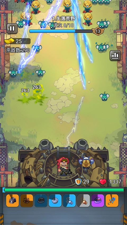 这个组合的特点在于包含了不同类型的武器,兼具范围伤害与单体输出能力,能够适应各类战斗场景。其中雷符与闪电矛可带来雷电属性的持续伤害效果,冲锋枪和激光棒适合快速清理小型敌人,而火箭筒和卡车则能在重要时刻发挥作用,造成高额伤害。