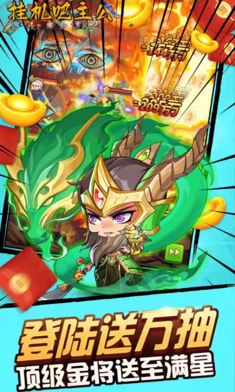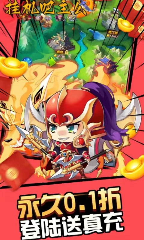 《挂机吧主公》是一款以三国为题材的放置挂机类游戏,采用2D卡通人物形象,将经典三国角色进行了生动的动画化呈现。Q萌可爱的形象设计,既保留了三国名将的独特气质,又让玩家能直观感受到角色的实力与魅力。在游戏中,你将化身为一位主公,与众多三国时期的人物互动。游戏打破了传统卡牌玩法的局限,以轻松的放置挂机模式,替代了繁琐的手动操作,让你在休闲中体验三国世界的乐趣。