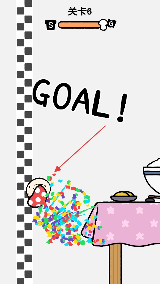 3、在【关卡6】中,只要抵达【GOAL】区域就算通关,你得合理把控蘑菇的移动方向和力度,利用场景里的道具来顺利抵达终点。