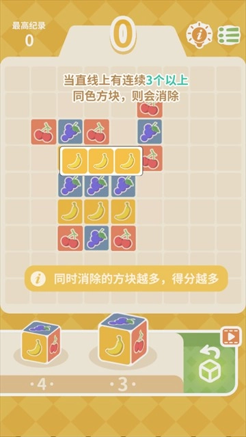 《你玩三消贼菜》把消除玩法和正方体巧妙结合,十分考验玩家对三维立体形态的认知以及消除机制的运用能力。玩家需要通过合理规划来实现尽可能多的方块消除,从而获取更高分数。考虑到游戏上手难度较高,制作组还贴心提供了三种效果各异的道具,帮助玩家快速掌握游戏机制,以便更快上手并享受游戏乐趣。