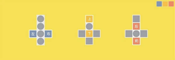 2、相同的颜色两两对立——即上下相同、左右相同、前后相同