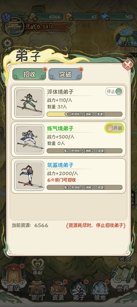 3、随着等级的提升,能招收的弟子也会越来越多