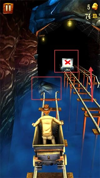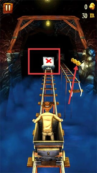 3、同时出现【障碍-轨道断裂】时,快速滑动切换至完整轨道,避免矿车坠落,保障游戏进度。