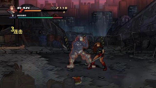 3、街道尽头你会遇到一个小BOSS钢管哥,打法就是看闪红,闪红一直跳攻击躲就行。