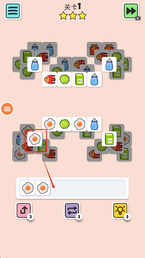 1、基础消除规则:点击选中三个以上同色方块即可消除,但必须先处理遮挡的上层方块。