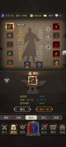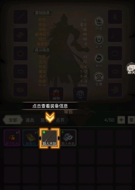 背包界面会显示已获取的装备,建议及时换上当前最强的装备。